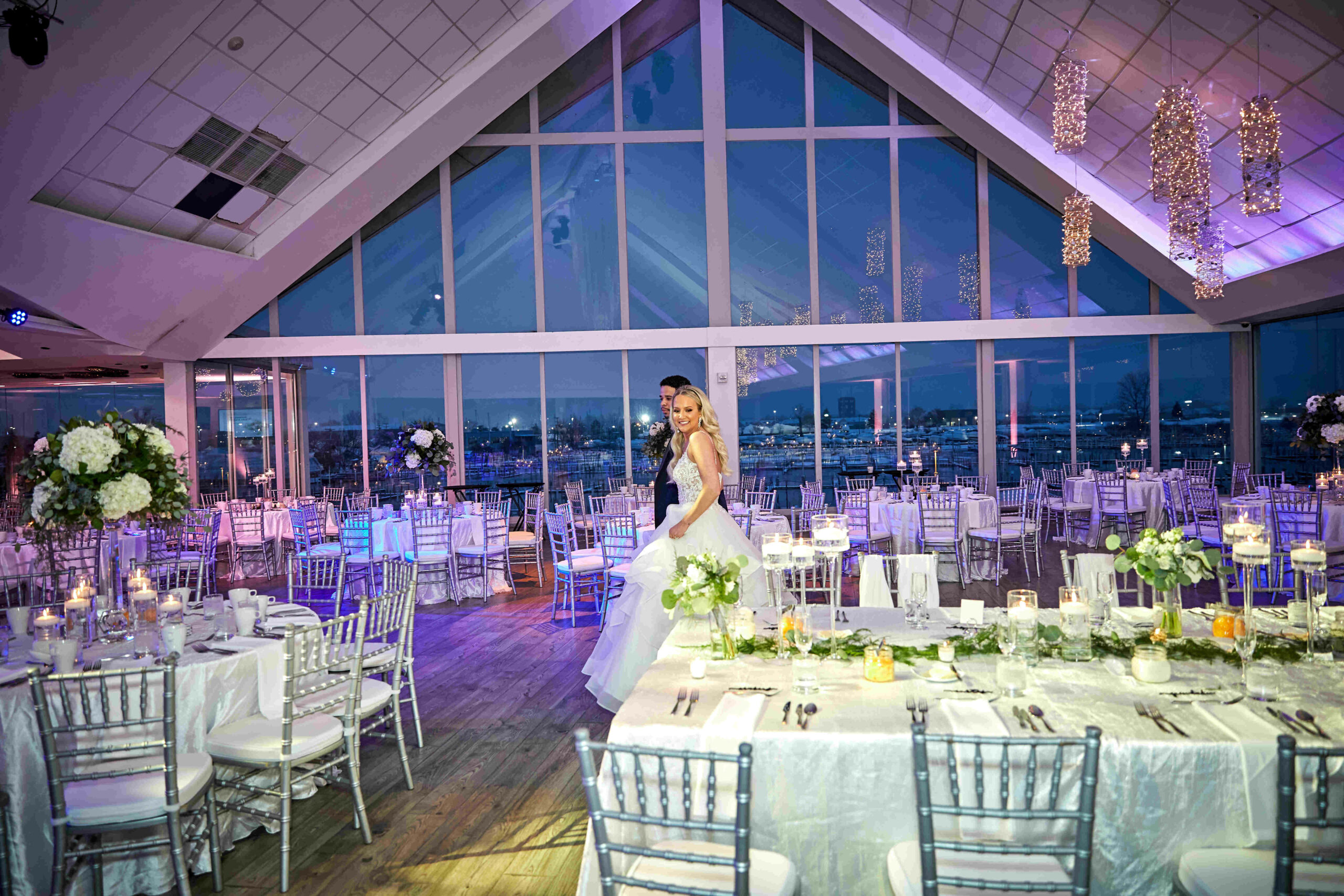 Roostertail, located in Detroit, MI, is a modern wedding venue. Nestled along the Detroit River, you can enjoy beautiful views from the event spaces here while you make memories to last a lifetime. Our team truly works to streamline all of the work involved in event planning! We are on hand to help in whatever way we can! Roostertail first opened our doors in 1958 and has welcomed all manner of illustrious guests, including Aretha Franklin, The Rolling Stones, and Elton John. Tony Bennett has also visited here, and even used to be an employee at the venue. Roostertail has more than 25,000 square feet of space for you to transform, with floor-to-ceiling windows that overlook the river and the city skyline. There are three event spaces to choose from and two outdoor ceremony sites. There is plenty of free on-site parking for added convenience. Lots of event items are provided, including linens, LED lighting, and Chiavari chairs!